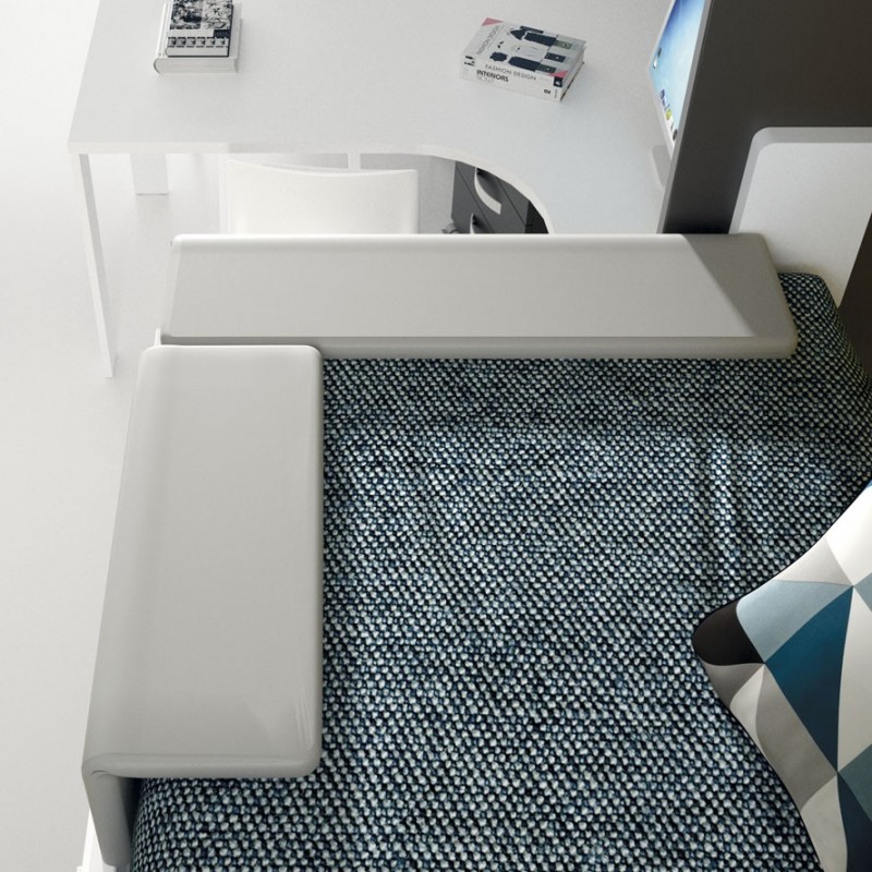 Los niñ@s también pueden compartir la mesa de estudio y hacer los deberes juntos, cada uno en su espacio, formando equipo y colaborando. El ambiente es muy completo y bien organizado, pensado e ideado para tener a mano todo lo necesario. Todas la funciones importantes de un dormitorio están disponibles y contempladas al detalle, nada falta en este universo infantil.